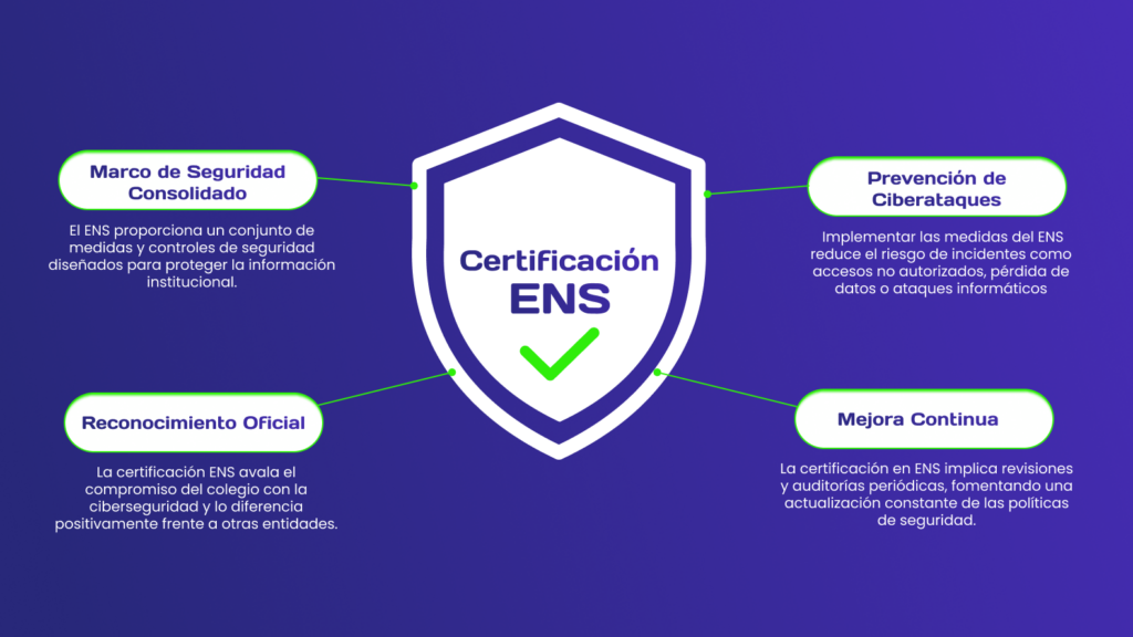 Reconocimiento Oficial: La certificación ENS avala el compromiso del colegio con la ciberseguridad y lo diferencia positivamente frente a otras entidades.