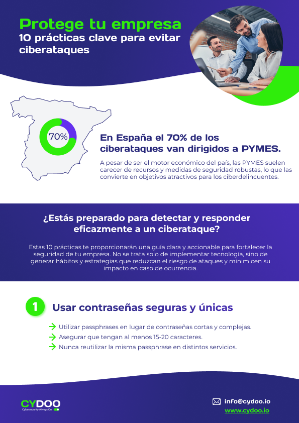 Descarga ahora “10 Prácticas Clave para Evitar Ciberataques” y aprende cómo fortalecer la seguridad de tu negocio con acciones concretas y efectivas.